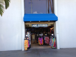 Just to the right and in front the church is a very common sight in Waikiki, an ABC Store.