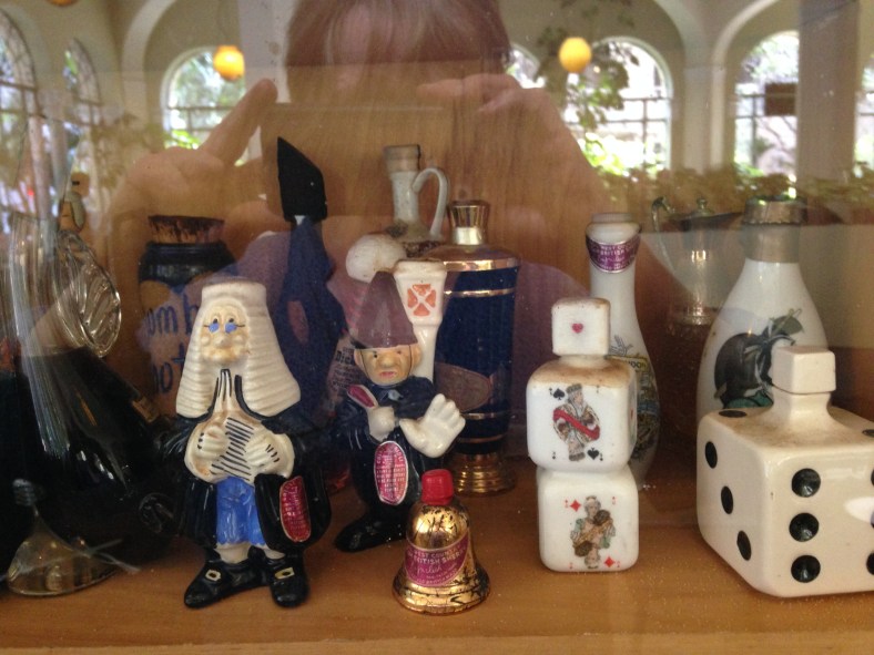 One of unique things about this place, beside its menu, is the owner’s collection of whimsical liquor bottles. There were thousands but because they were behind glass, it was hard to get a picture of them. Here are a few:
