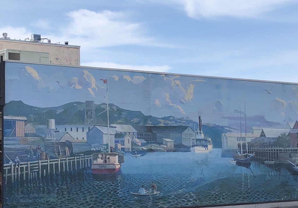 This mural on the side of a Starbucks on Main Street, depicts what downtown Napa must of been like before the region became famous for wineries. Nowadays the river is neither wide nor deep enough for large ships. I only saw two small fishing boats heading downstream. No yachts or pleasure boats.