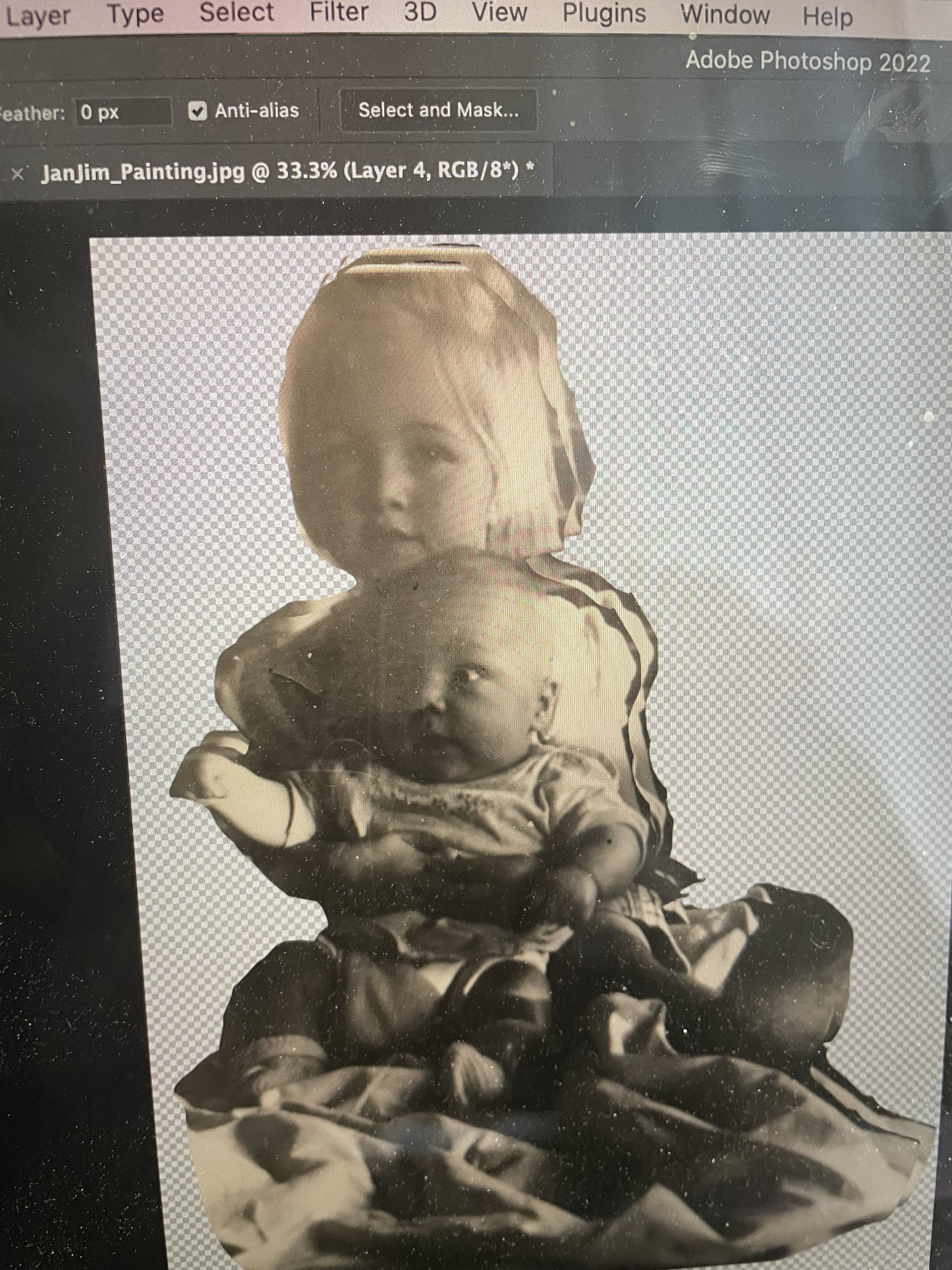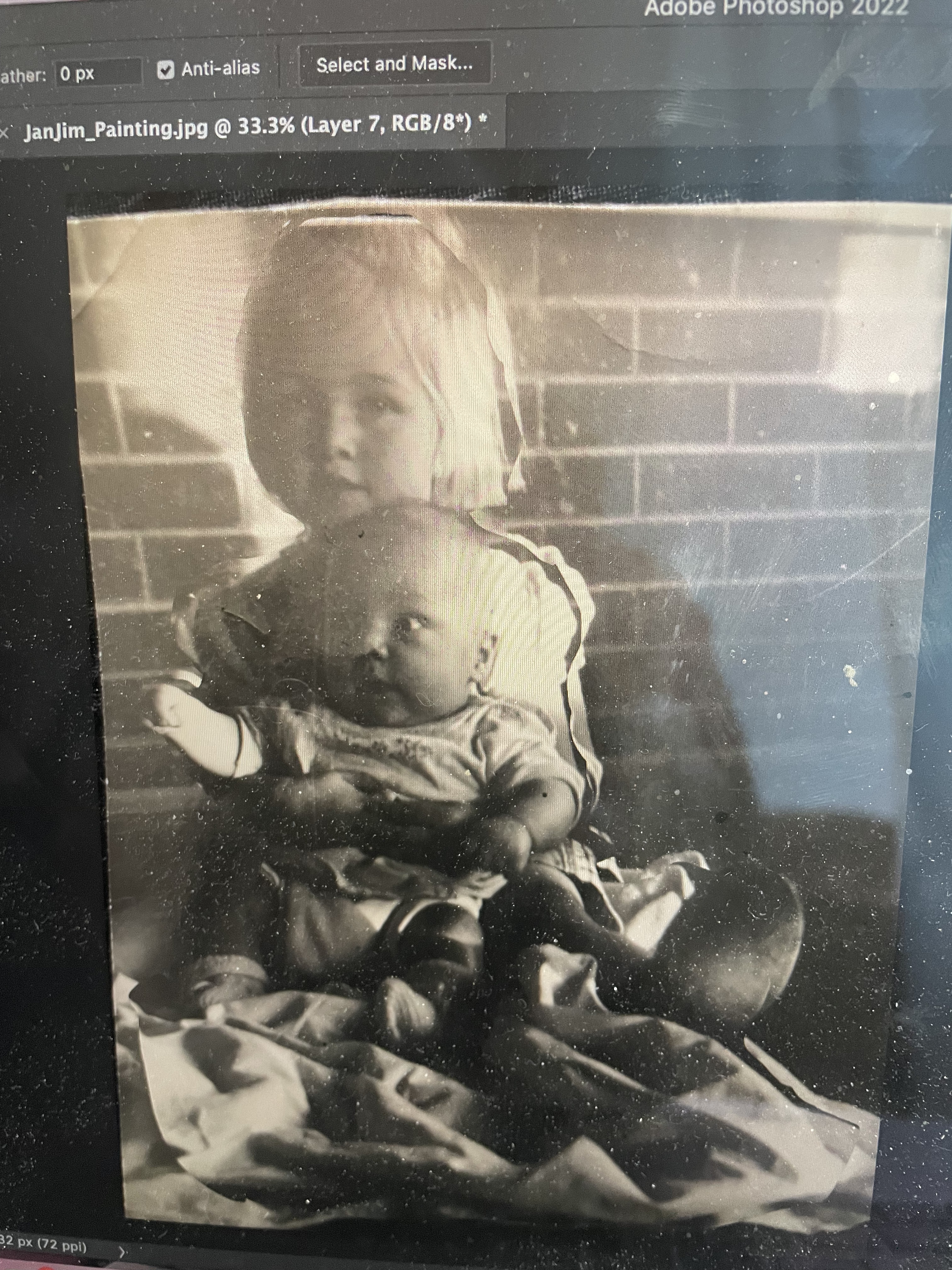 Whoops – the baby is too big. My brother was a chunkster but not that chunky. But I think it’s close enough for a start. Now to the hard part for me: the pallet. I am not good with colors and so I decided to open the original image in Photoshop and do my experimenting there.