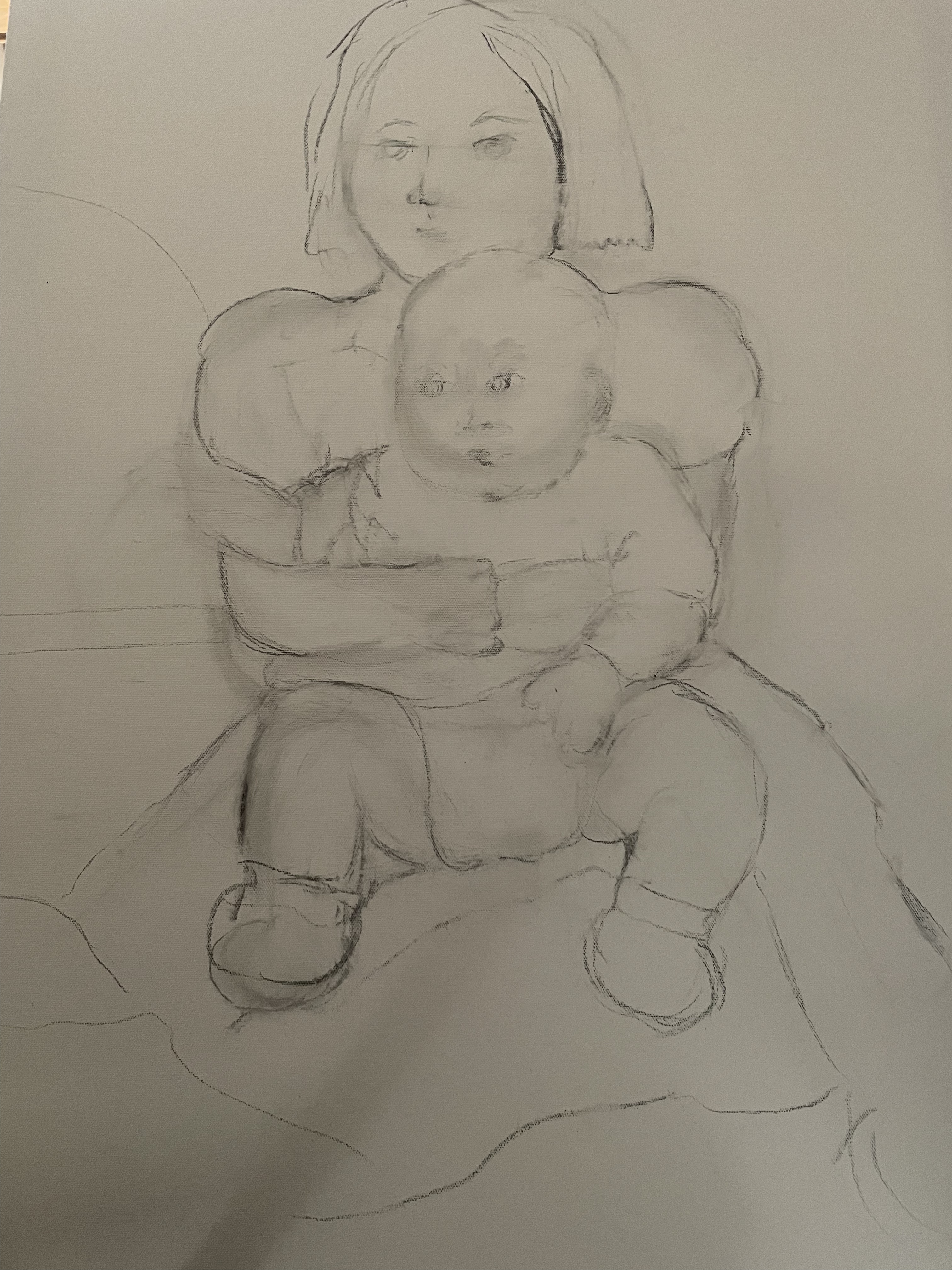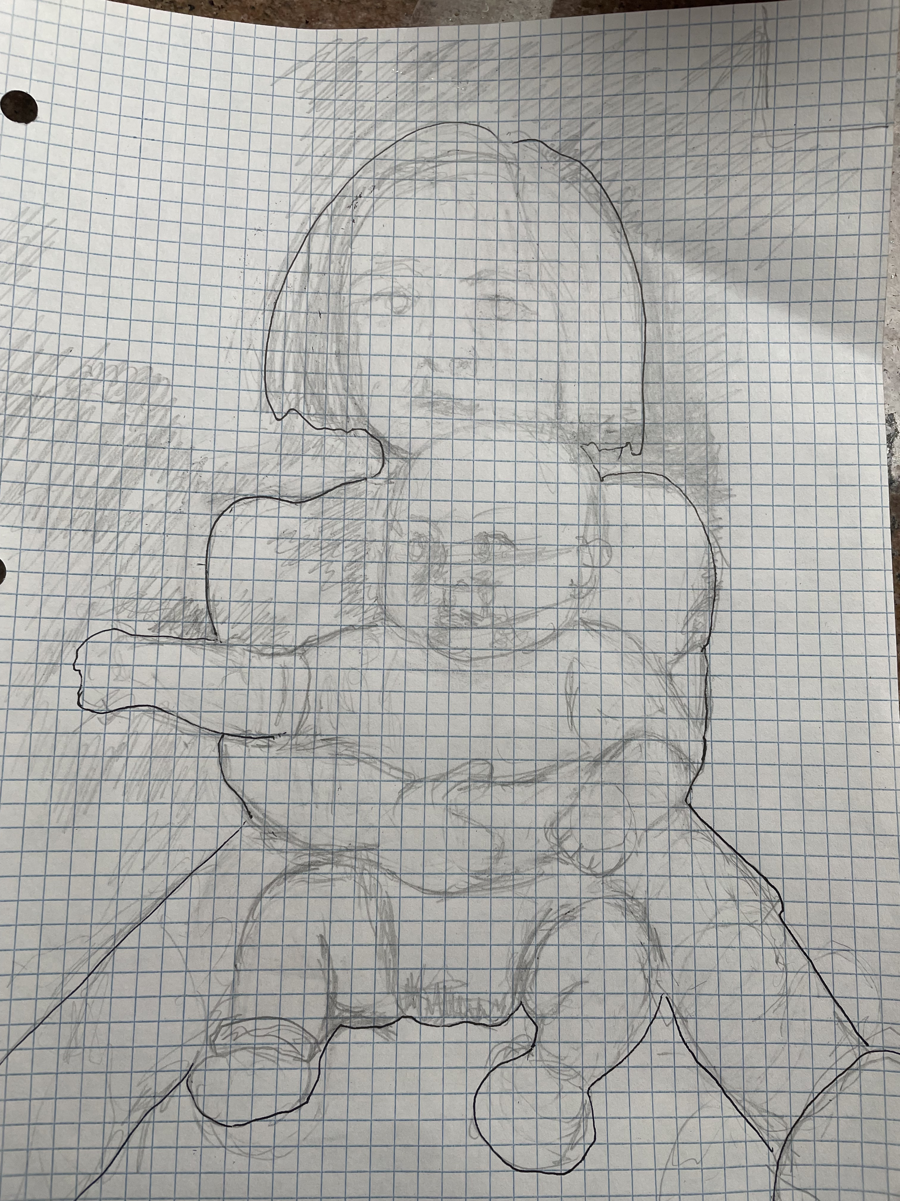 First I drew the image on graph paper and outlined the form. It needs a few adjustments but those I hope can be made during the painting process. Then I transferred the rough shape onto the canvas.