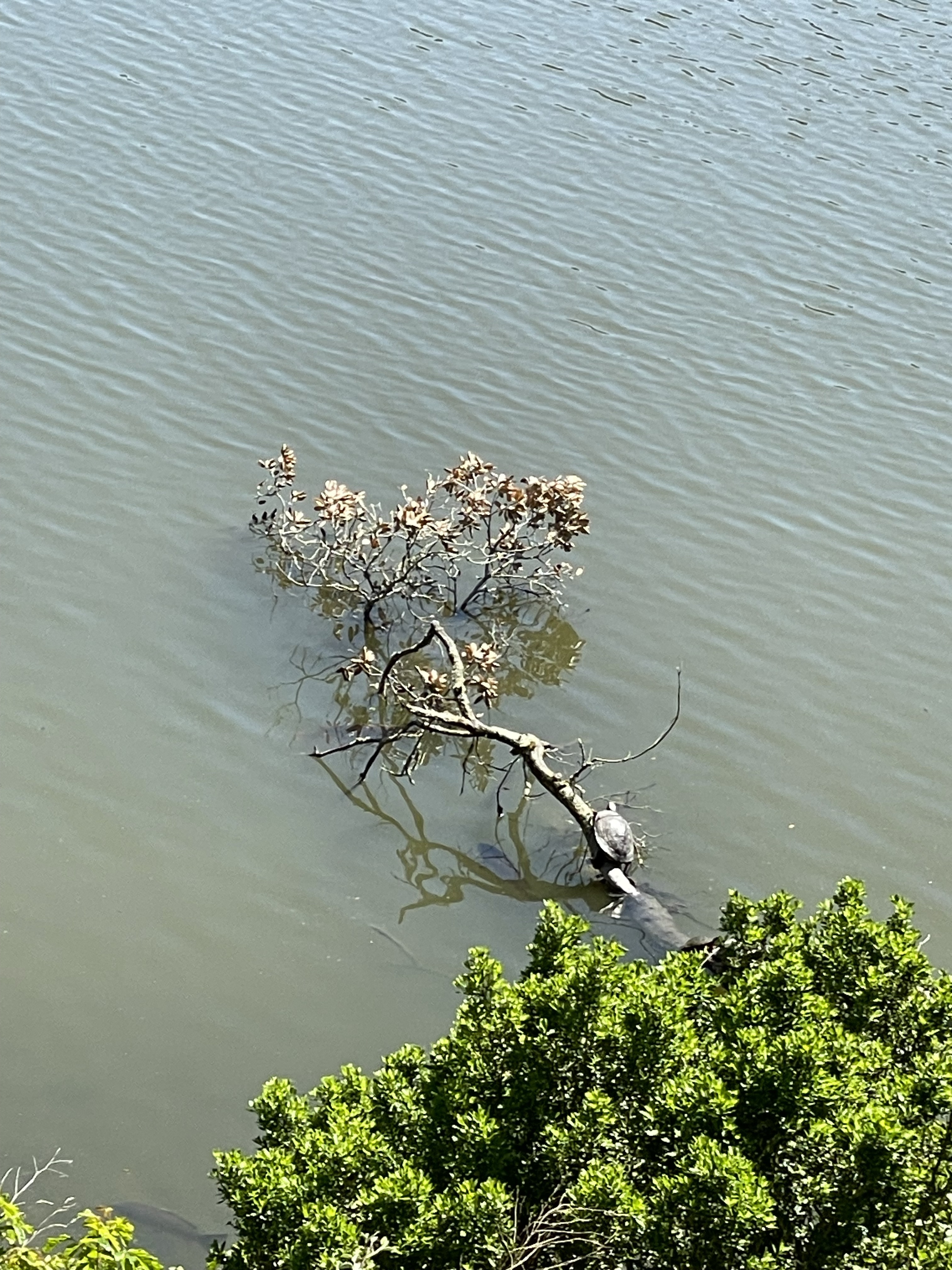 There was a baby turtle swimming near the limb where the adult turtles’ like to sunbathe. We were at a distance so this was the best shot I could get with my iPhone camera.