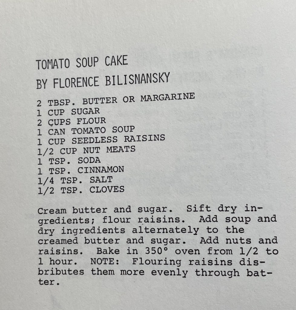 Ever wonder what to do with an old can of tomato soup? Well, make a cake of course. Ingenious? What do you think?