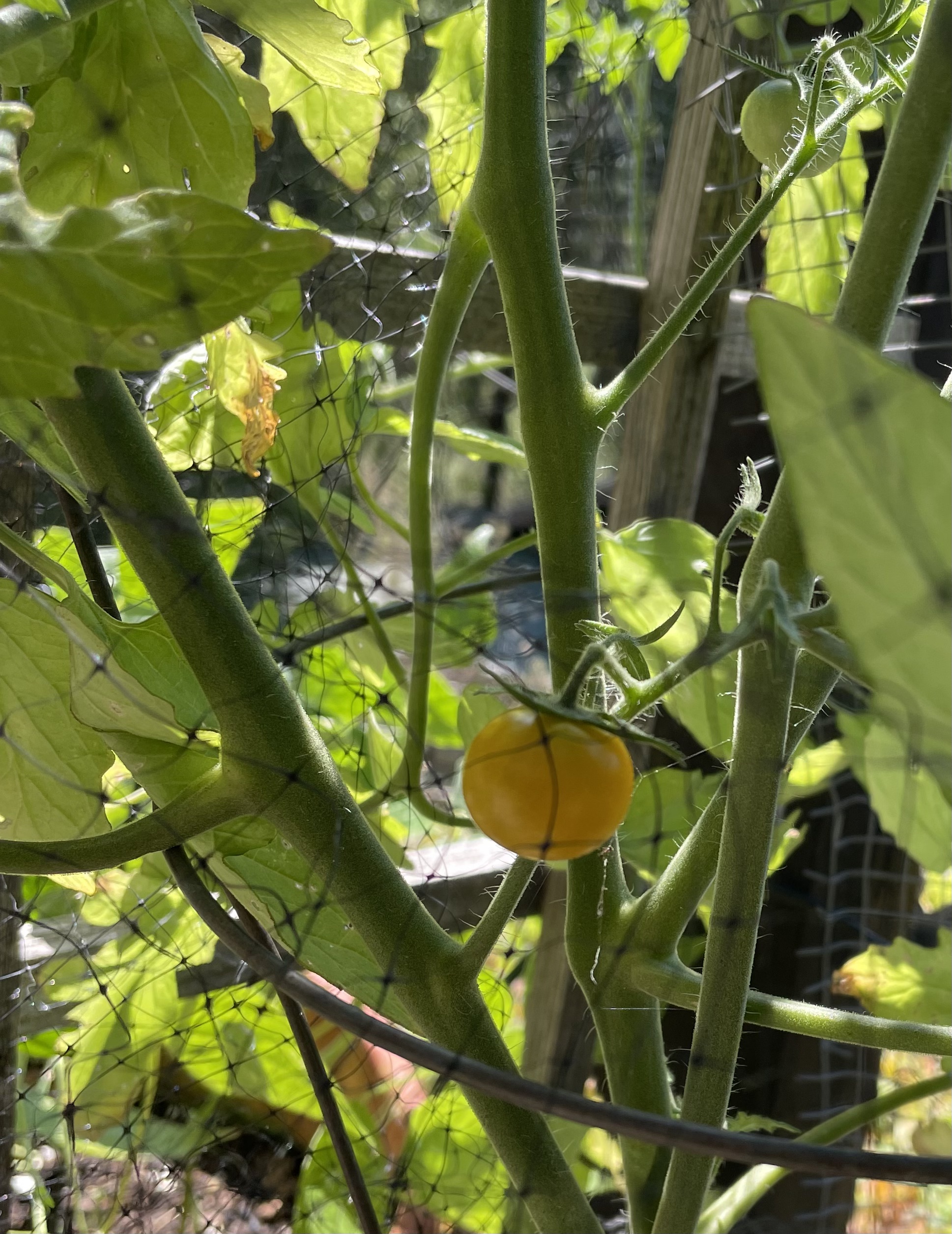 One good thing about the hot spell was this little guy! Generally we get too much fog for tomatoes to ripen properly. I also noticed that our one grapevine is making the effect to produce grapes.