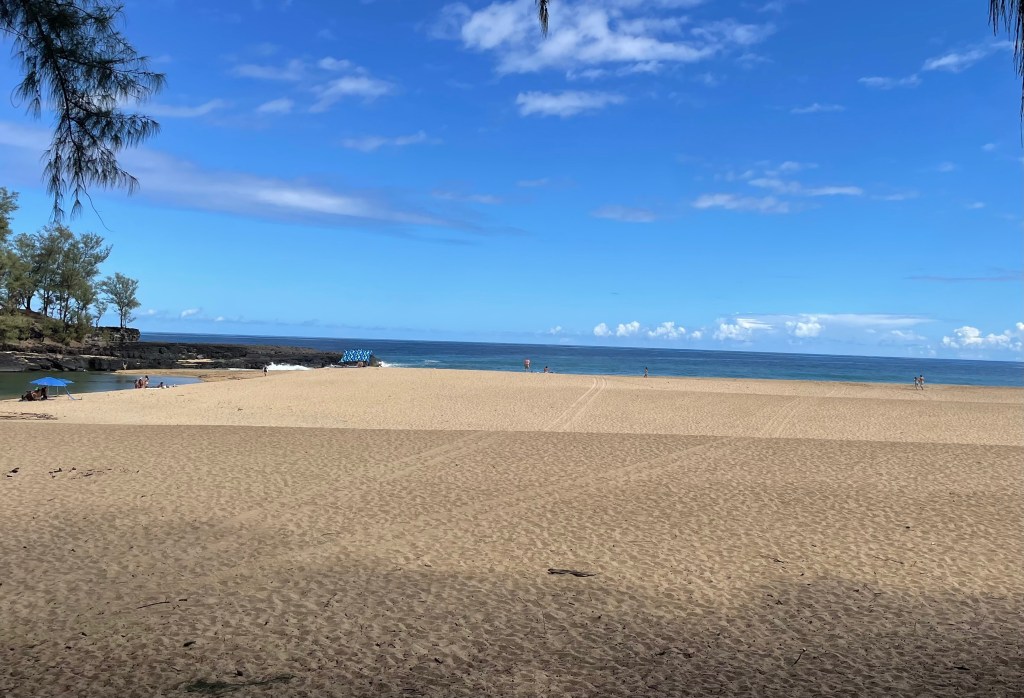 As to the question of why this beach is practically abandoned, well, it isn’t easy to get to. The two lane coastal road leading from Hanalei to the Lumaha’i Beach is often washed out or in constant repair. There are many one lane bridges meaning you have to wait your turn (minding the Hawaiian rule of “five cars”). And, once you get there, the parking lot is a mud and boulder-filled pit only suitable for Jeeps and the off-shore currents are notoriously deadly.
