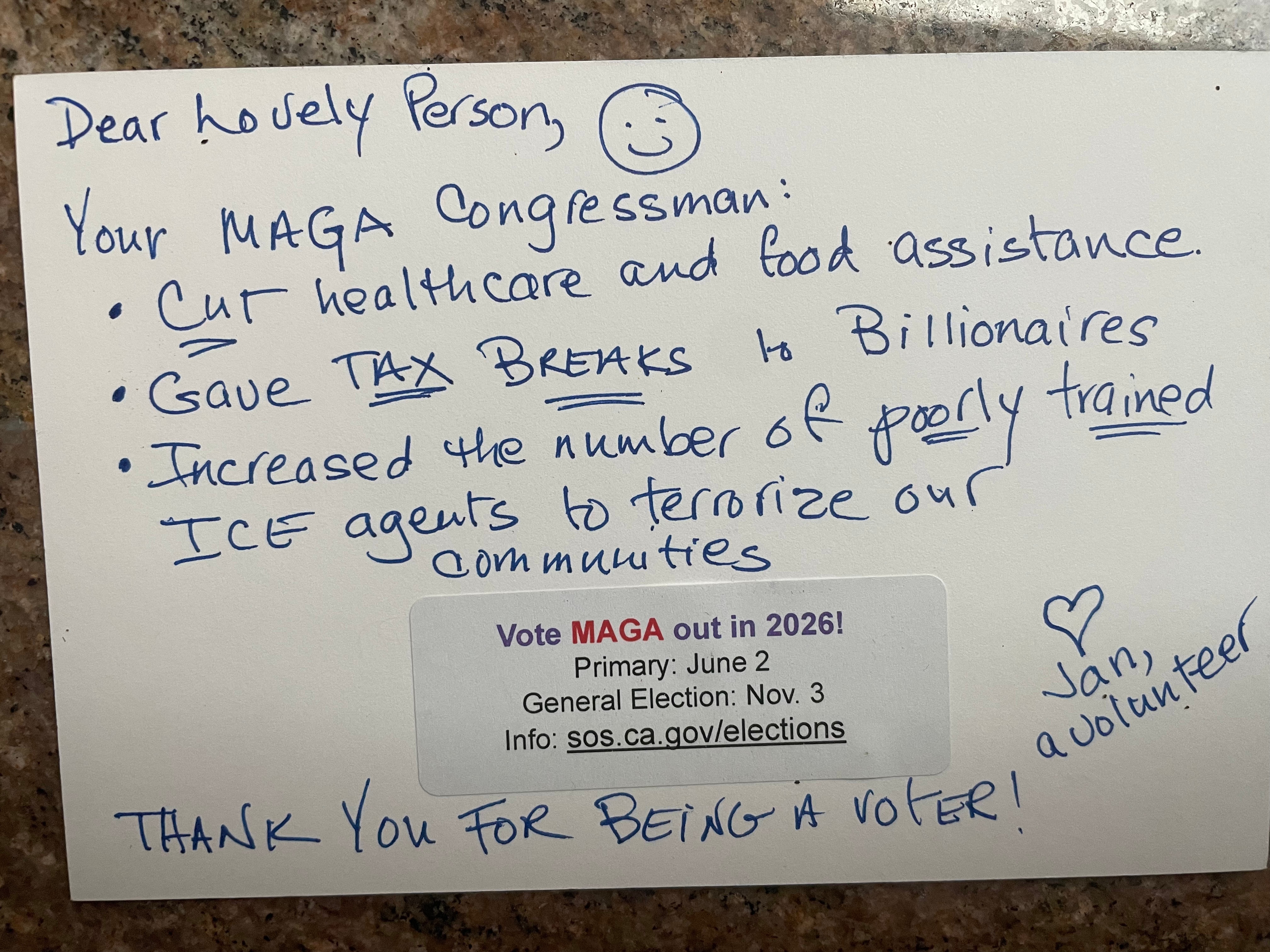 I’m feeling grim as well, especially with that SAVE act in the Senate. I’m 100% that people will vote out MAGA, if given the chance. But perhaps I’m being unrealistic about how cultish that group is? I admire your work with the postcards. John and I have attended every No Kings march/protest so far but he’ll be gone this weekend, so I’m not sure what I’ll do.