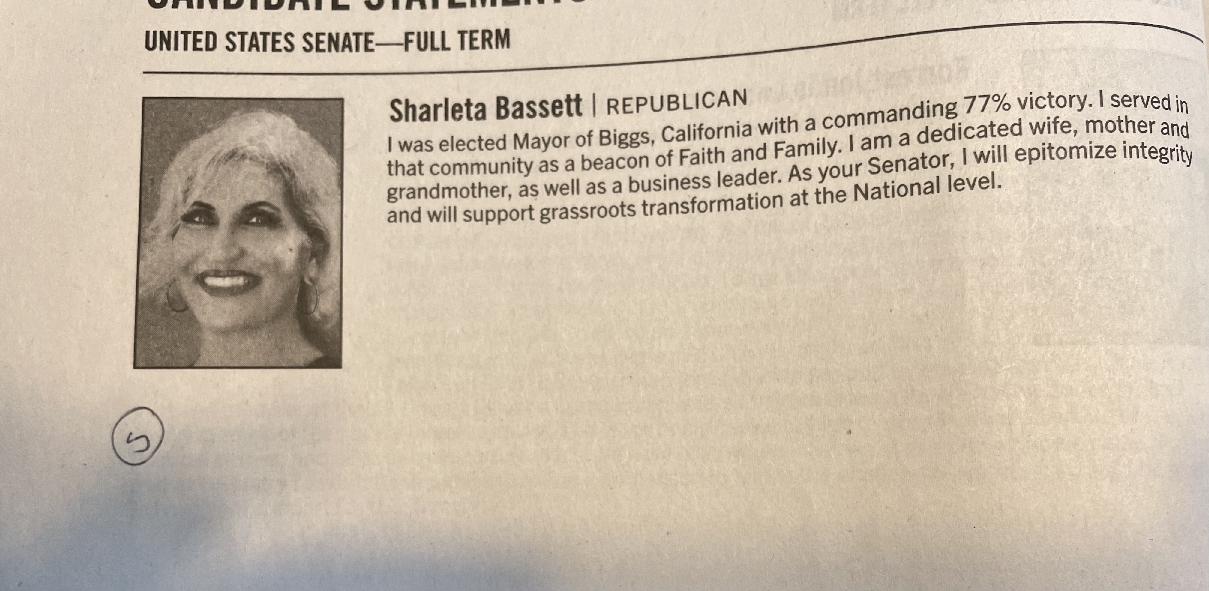 This lady is practically a god in Biggs California (population 1,700) and good for her but I have no idea what sort of “grassroots transformation at the National level” she’s talking about. I doubt she does either but she is a beacon!