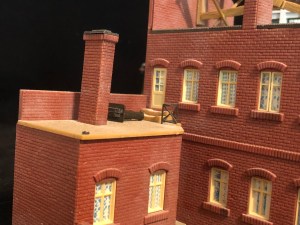 Realism also means that buildings must have lights. This factory along the tracks contains over thirty little tiny lights that had to be hand-wired.