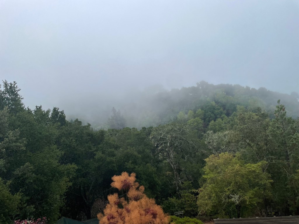 Seven AM and fog still clings to the coastal hills. It’s 54 degrees out there folks!