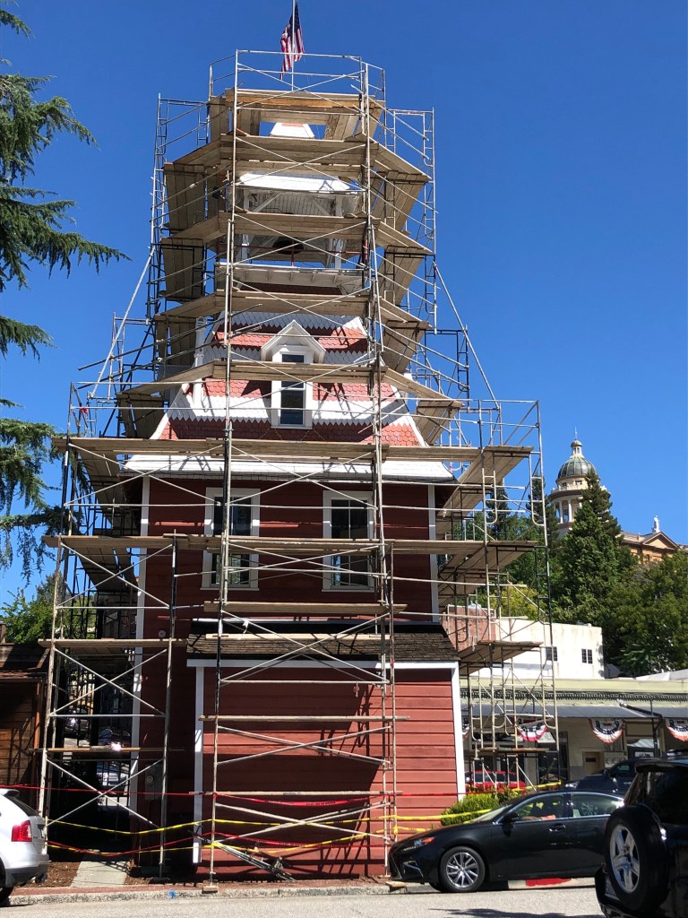 The other day on our way to Reno Nevada we decided to try the Mexican cafe in old section of Auburn. The cafe itself was nothing much to see but across the street was this structure currently undergoing some sort of repair. Care to guess what it is?